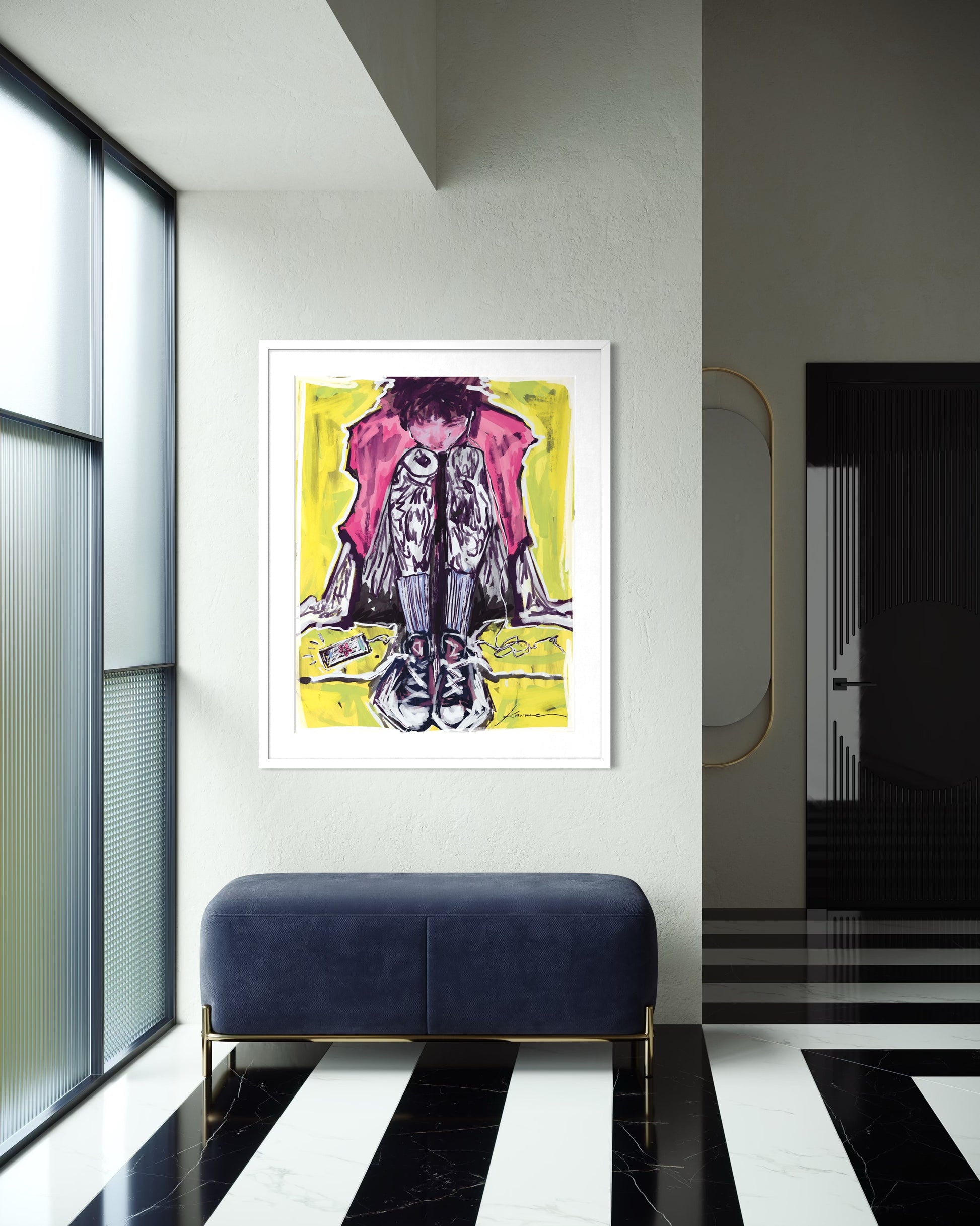 El fondo amarillo-lima expone lo que él no dice: